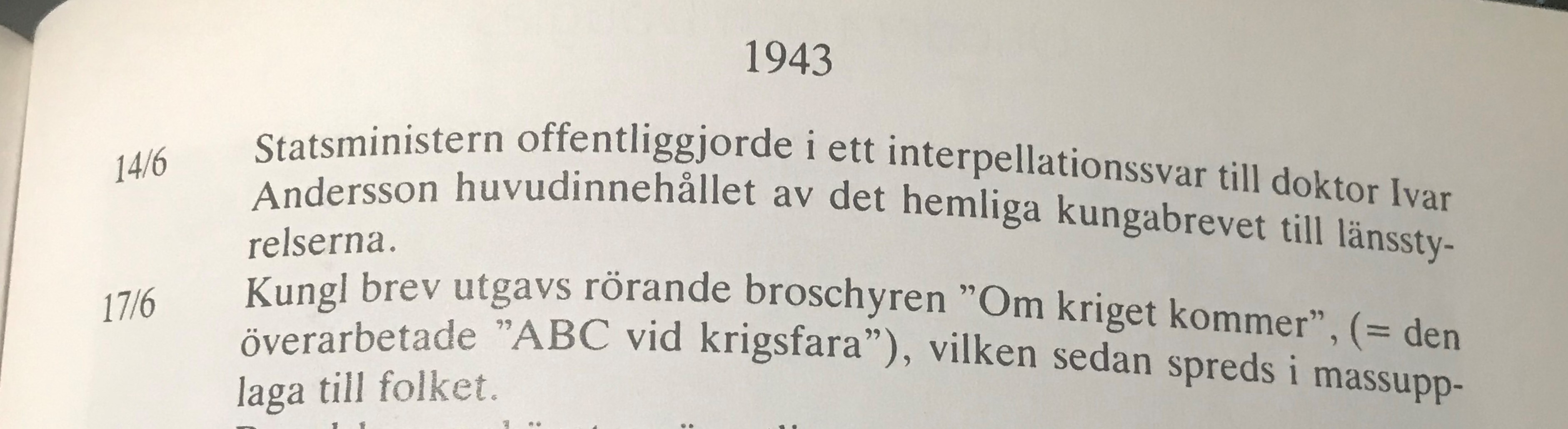 I broschyren Om kriget kommer fanns denna passus med på flera ställen. Liksom fomuleringen